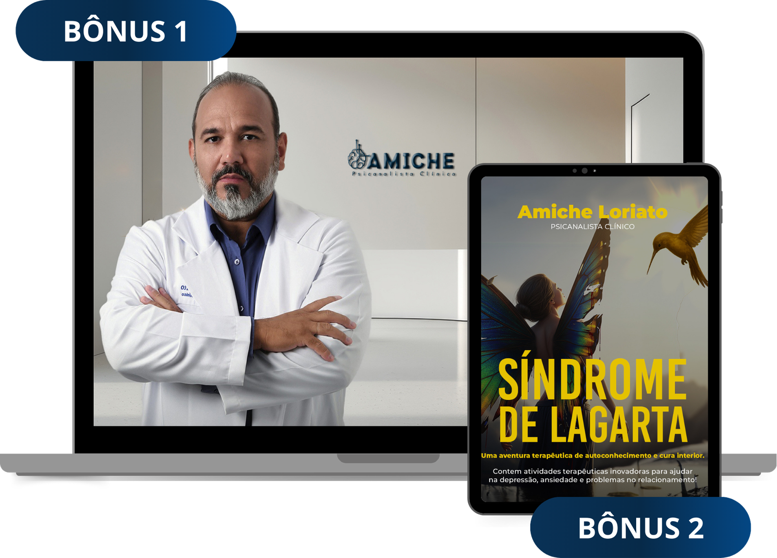 Criador da trilha “Síndrome de Lagarta”, Amiche desenvolveu um método que une psicanálise, neurociência, física quântica, análise corporal, psicologia positiva e resgate da criança interior, tudo em um só método e com uma linguagem acolhedora, acessível e